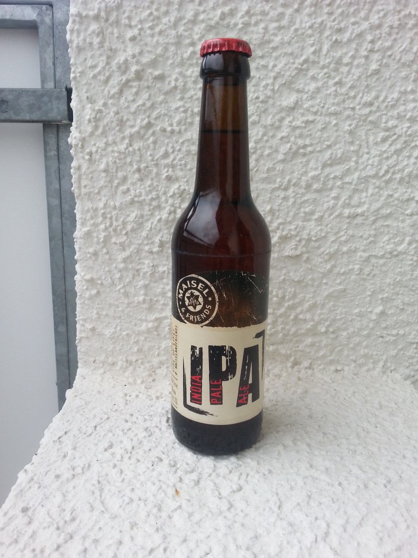Heute im Biertest geht es ins Oberfränkische, nämlich nach Bayreuth. Verkostet wird ein Bier der seit 1887 bestehenden Brauerei Maisel. Im Test ist aber nicht etwa eines der weltweit sehr bekannten Weizenbiere, sondern ein Bier aus der 2012 gestarteten Craftbierlinie Maisel and Friends. Das besondere an der Linie sind wie der Name schon sagt die Friends, den immer wieder lädt der Brauereichef Jeff Maisel befreundete Brauer zum gemeinsamen brauen nach Bayreuth ein. Die hieraus entstehenden Sude werden dann oftmals als Sondereditionen in großen 0,75l Flaschen vertrieben. Heute gibt es aber ein Bier aus der standard Craft Serie in 0,33 Flaschen die zuerst mit einem Pale Ale startete und mittlerweile um das Citrilla und das IPA ergänzt wurden. So genug gesagt, nun aber ab zum Test, denn wie die Überschrift schon verlauten lässt widme ich mich nun dem IPA. Die Farbe ist kupfern bis bernstein und hat einen leicht rötlichen Stich. Der Schaum ist schön weiß und wirkt auch sehr beständig, d.h. er flüchtet nicht sofort nach dem einschenken. Der Geruch ist anders als ich es erwartet hab doch auch sehr getreidelastig, hat also Brot und Weizenoten. erst beim Weiteren riechen kommen Sauerkirsche Apfel und Pflaumennoten in die Nase. Die Fruchtnoten im allgemeinen gehen eher in die schwerer sehr reife Ecke. Der Geschmack ist dagegen durchaus spritziger und grasiger als der Geruch. Beim Antrunk kommt sofort ohne Kompromisse der Hopfen und es sprudelt und zupft schon an der Lippe und auch im weiteren Trinkverlauf macht der Hopfen deutlich wer Herr im Haus ist. Im Mittelteil kommen mal kurz die leicht süßlichen Noten des Malzes durch aber ansonsten verhält es sich sehr bitter. Der abgang ist dann sehr American Style lastig und der Hopfen spielt seinen volle Bitterkeit aus. Daher hebt sich dies grasig kratzig im Rachen. Man hat viele florale und parfümige Noten die teilweise ein wenig Künstlich wirken. Leider fehlt dem ganzen ein wenig die Fruchtigkeit und es geht schon in die sehr herbe teils auch richtig bittere Ecke und spielt somit seine 50 IBUs voll aus. Es ist schon ein gutes IPA aber man muss es mögen da leider die Fruchtigkeit ein wenig fehlt die ich einfach lieber habe als diese kompromisslose bittere. Daher vergebe ich 3 Sterne aber mit der klaren Tendenz nach oben in Richtung derer 4.