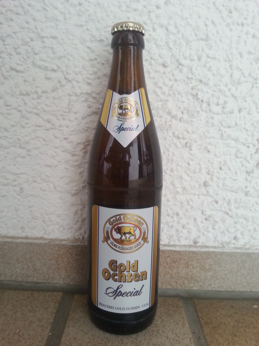 Heute habe ich mal wieder etwas aus Ulm, von der Brauerei Gold Ochsen, im Test. Getestet wird dieses mal das Special. Das Special wurde erst beim letztjährigen European Beer Star Award mit einer Goldmedaille in der Kategorie „European Style Export“ ausgezeichnet. Man darf also gespannt sein ob dieses Bier wirklich Gold wert ist. Mit 5,5% Prozent Alkohol befindet sich dieses Bier an der Schwelle zwischen Export und Märzen, also einem stärker eingebrauten untergärigen Festbier.