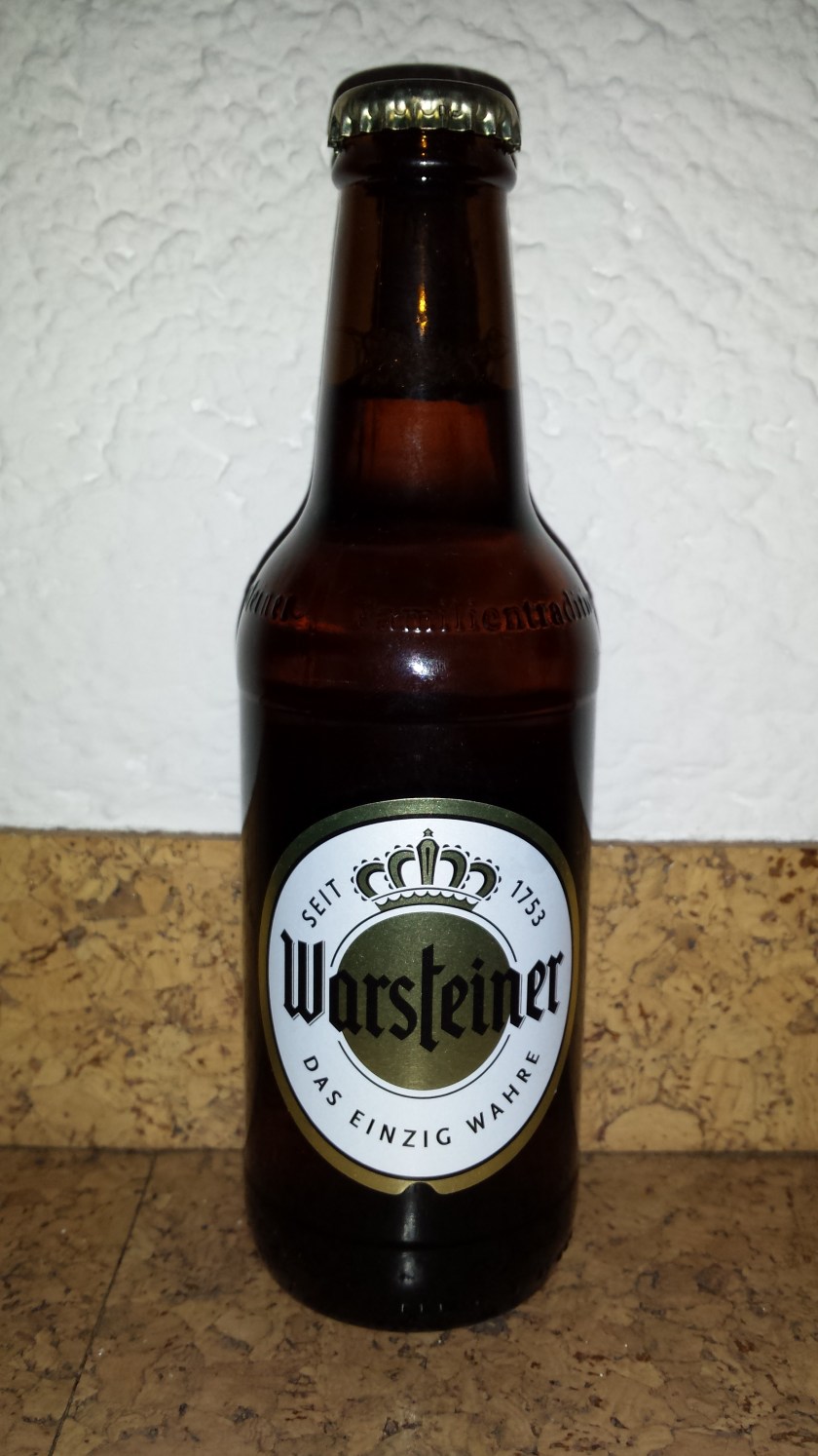 Warsteiner, eine Brauerei mit der es in den letzten Jahren ziemlich steil bergab ging. Zahlreiche Topmanager der Branche haben sich nun schon versucht, das einstige Flagschiff am deutschen Biermarkt weider nach oben zu bringen. Bisher aber nur mit mäßigem Erfolg. Seit einer angeblichen Scientology Verschwörung anfang der 90er Jahre, als behauptet wurde die Inhaberfamilie würde Scientology nahestehen ging der Absatz der Brauerei, trotz einiger Dementis seitens der Familie Cramer zurück. Seitdem hat sich die Brauerei auch nicht mehr wirklich davon erholt. Nun aber etwas zur Brauerei. Die Warsteiner Brauerei wurde 1753 gegründet und befindet sich wie der Name schon sagt in Warstein im Sauerland und entwickelte sich bis zu eben jenem Zeitpunkt zur größten Brauerei Deutschlands. Bemerkenswert ist, dass das Unternehmen trotz dieser turbulenten Unternehmensgeschichte und seiner Größe stets in Besitz der Familie Cramer verblieb und noch heute unabhängig agiert. Verkostet wird heute das Flagschiff der Brauerei, das premium Pilsner oder auch Premium Verum wie es früher hieß. Es ist ein typisches Pils und wird seit kurzem auch in diese kleine Flasche abgefüllt. Es hat einen Alkoholgehalt von 4,8%