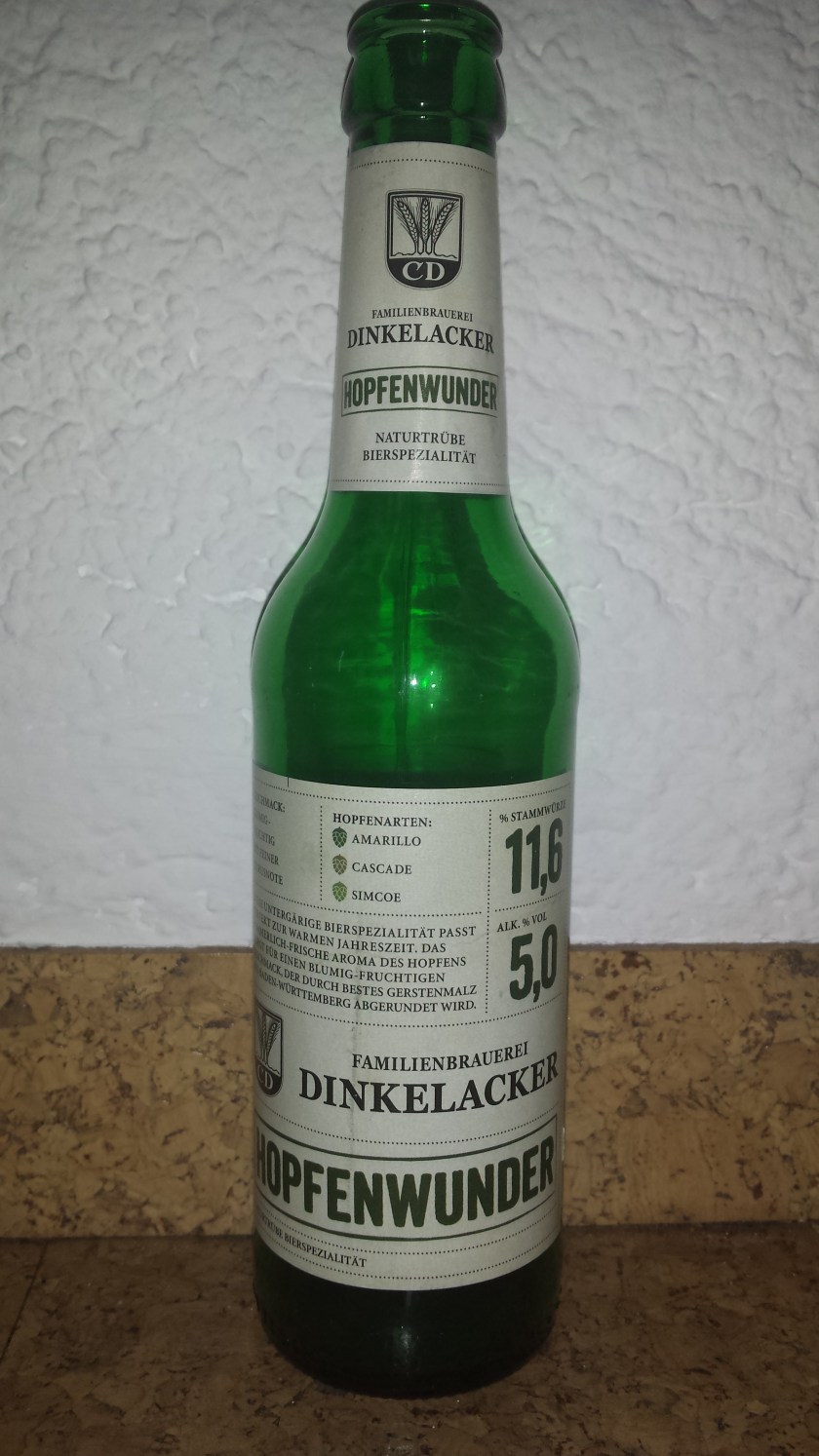 Nun fängt also auch Dinkelacker an Craft Biere mit besonderem Hopfen zu brauen. Denn sie haben diesen Sommer mit dem Hopfenwunder ein mit Aromahopfen gebrautes Pils/Lager herausgebracht, das anfangs nur für die Gastronomie vorgesehen, mittlerweile aber auch immer öfter im Handel zu finden ist. Es soll die fruchtig, frische Spezialität zur warmen Jahreszeit sein. Mit 5,0% Alkohol ist es auch eher leichter, also perfekt für die heiße Sommernächte.