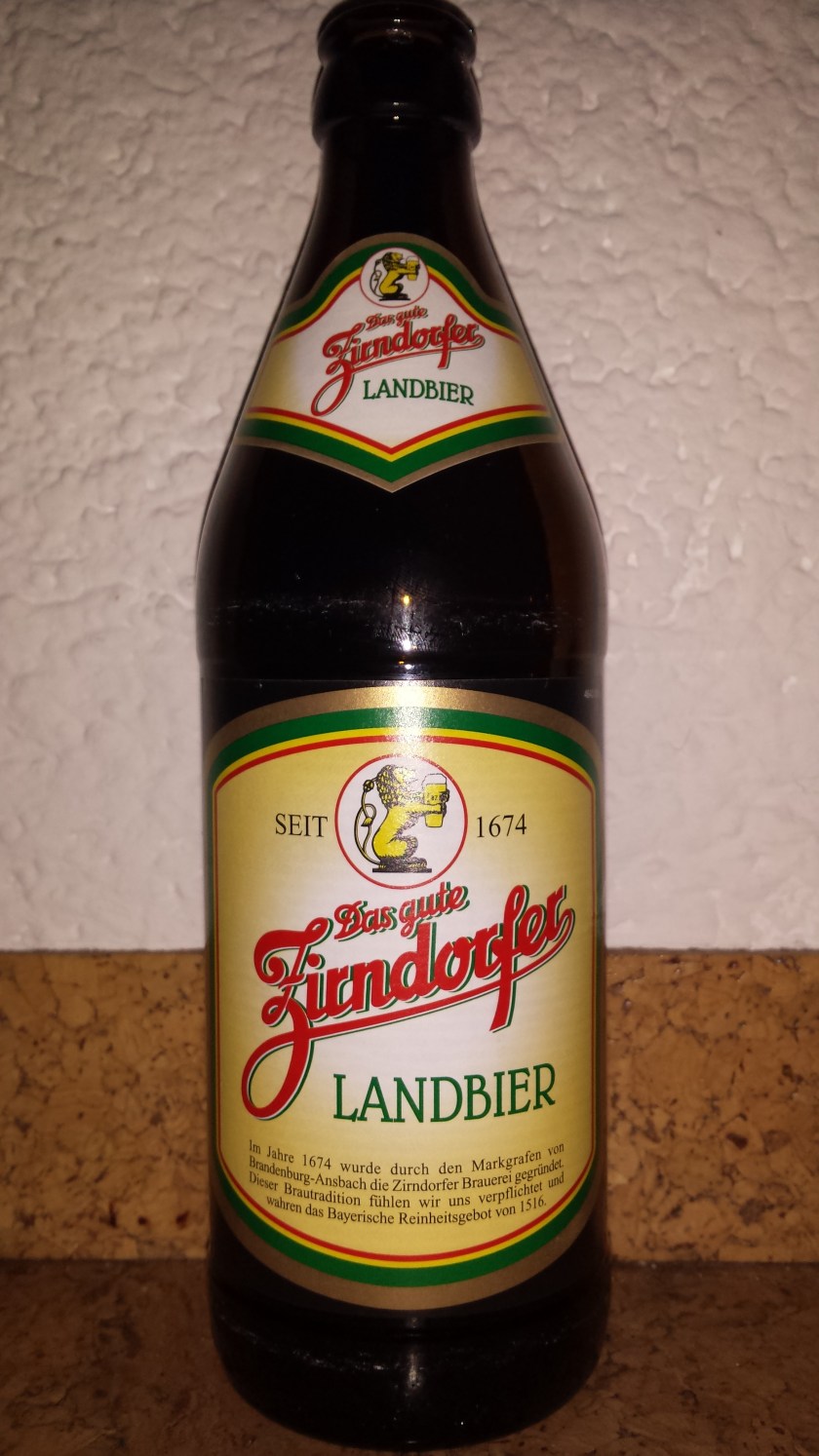Zirndorf, das beschauliche Städtchen im Frankenland dürfte viele durch die Spielzeugindustrie bekannt sein. Allen voran hat dort die Firma die Playmobil herstellt ihren Hauptsitz. Auch das Playmobiland befindet sich in der nähe von Zirndorf. Aber die Stadt hat auch biertechnisch etwas zu bieten. Nämlich mit der Zirndorfer Brauerei. Dies ist aber bei weitem nicht eine Beschauliche fränkische Landbrauerei sondern kann schon zu den etwas größeren in Unterfranken gezählt werde, zumal sie sich in Besitz der großen Tucherbräu aus dem benachbarten Nürnberg befindet. Verkostet wird aus dem drei Biere umfassenden Sortiment heute das Landbier. Es hat einen Alkoholgehalt von 4,9%.