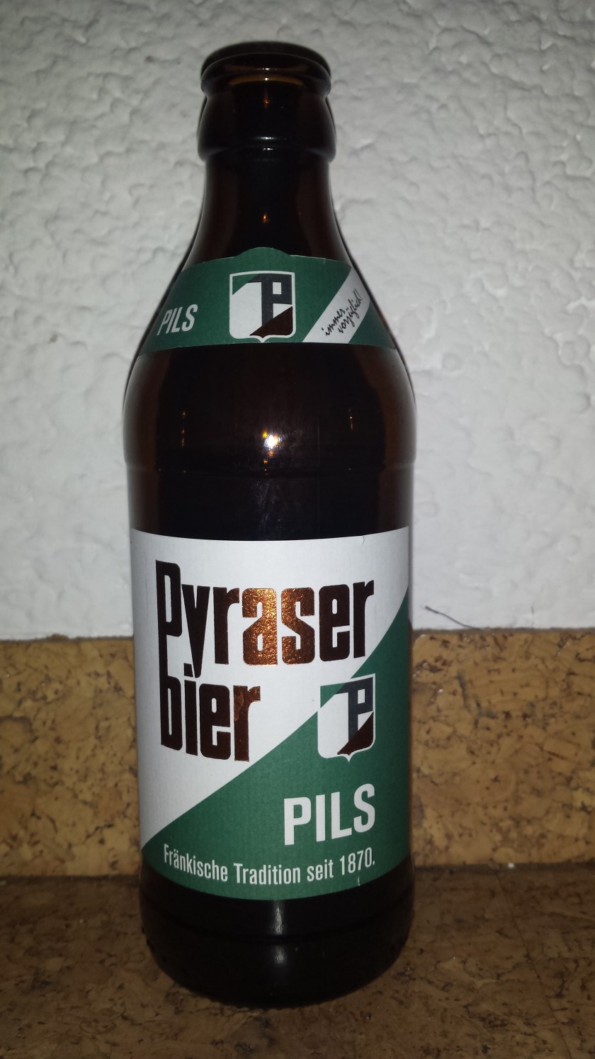 Mal wieder Franken, diesmal gehts aber nach Pyras, einem Ort der gerade einmal 203 Einwohner zählt. Dennoch gibt es in dem Ort, wie häufig in Franken eine Brauerei. Nämlich die Pyrasser Landbrauerei. Und die ist gar nicht mal so klein, denn die 1870 gegründete Brauerei ist mittlerweile auf eine Jahrsproduktion von 190.000 Hektolitern angewachsen und kann sich nun getrost als mittelständige Brauerei bezeichnen. Das große Sortiment, das mittlerweile rund ein Dutzend verschiedener Bierspezialtäten bietet, lässt für keinen Berfreund einen Wunsch offen. Aus diesem breiten Sortiment wird heute das Pils verkostet.