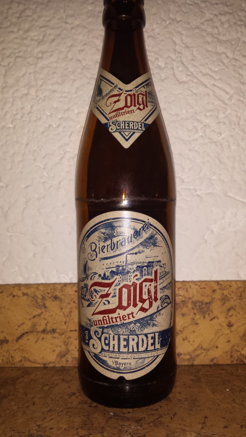 Heute gibt es mal wieder etwas aus Franken. Es geht nach Hof im äußersten Norden von Bayern an der Grenze zu Sachsen. Dort braut seit 1831 die Brauerei Scherdel. Jedoch wurde die Erfolgsgeschichte der Brauerei 2003 ,nach einem Insolvenzantrag, abpuppt beendet. Dies führte zwar dazu,das die Brauerei von der Kumbacher Gruppe übernommen wurde, jedoch konnte die Brauerei so gerettet werden und ihren Betrieb aufrecht erhalten. Vom 13 Biersorten umfasenden Sortiment wird heute das neueste Produkt, das Zoigl verkostet. Das Zoigl ist seines Zeichens ein klassisches fränkisches Kellerbier, wie es viel in Franken gibt. Es hat einen Alkoholgehalt von 5,2%.