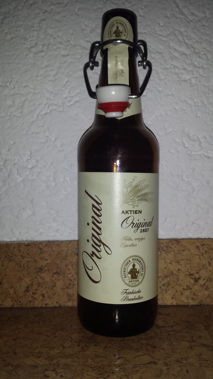 Im heutigen Biertest geht es mal wieder ins Oberfränkische Bayreuth. Dort, in der Stadt Richard Wagners, sitzt auch die Bayreuther Bierbrauerei, von der schon einmal ein Bier im Test war. Das Bier wird auch nicht mehr von der Bayreuther Bierbrauerei gebraut, sondern ist mittlerweile vielmehr eine Marke der Maiselbrauerei. Von den drei Bieren die es unter der Marke Aktien gibt wird heute das Original verkostet. Es ist ein Exportbier mit 5,3% Alkohol.