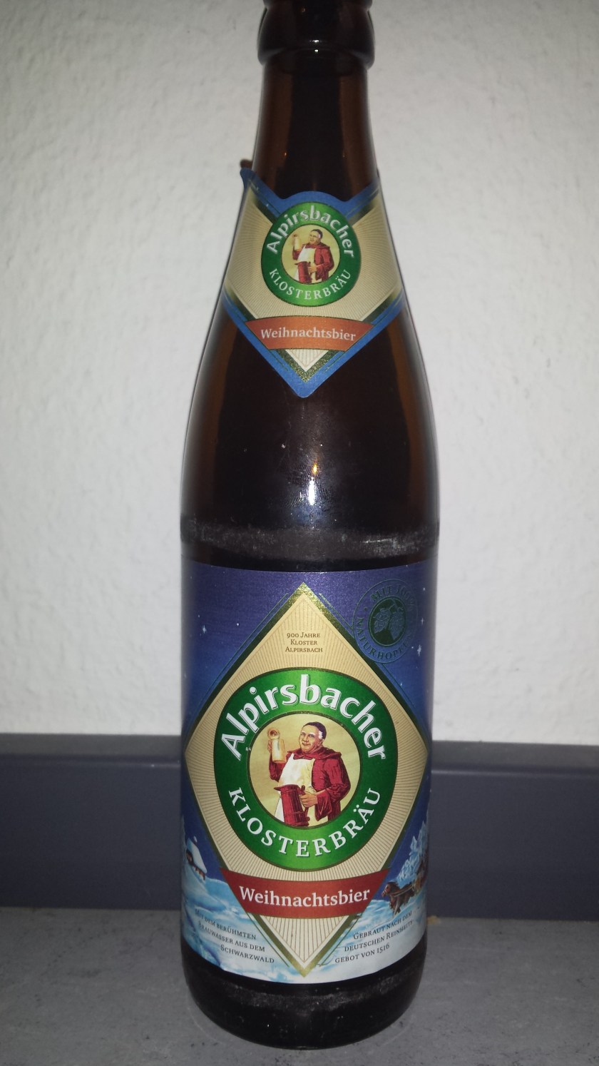 Und schon steht vor der 1 ne 2. Heute wird schon das 20igste Türchen geöffnet und heilig Abend ist nur noch 4 Tage entfernt.Deshalb wird es auch heute wird wieder einen Biertest geben, der sich um ein Weihnachtsbier dreht. Diesmal geht es in den schwäbischen Teil des Schwarzwaldes, der mit seinen schneebedeckten Hügeln und dichten Tannenwäldern ohnehin Weihnachtsstimmung erzeugt. Es geht nach Alpirsbach zur Klosterbräu, von der schon einmal Biere im Test waren. Deshalb werde ich nun nicht noch einmal genauer auf die Brauerei eingehen. Verkostet wird diesmal das Weihnachtsbier, welches laut Etikettenangaben schon seit 1880 alljährlich dem Biergenießer die Weihnachtszeit versüßt. Das untergrärige Festmärzen hat einen Alkoholgehalt von 5,6%.