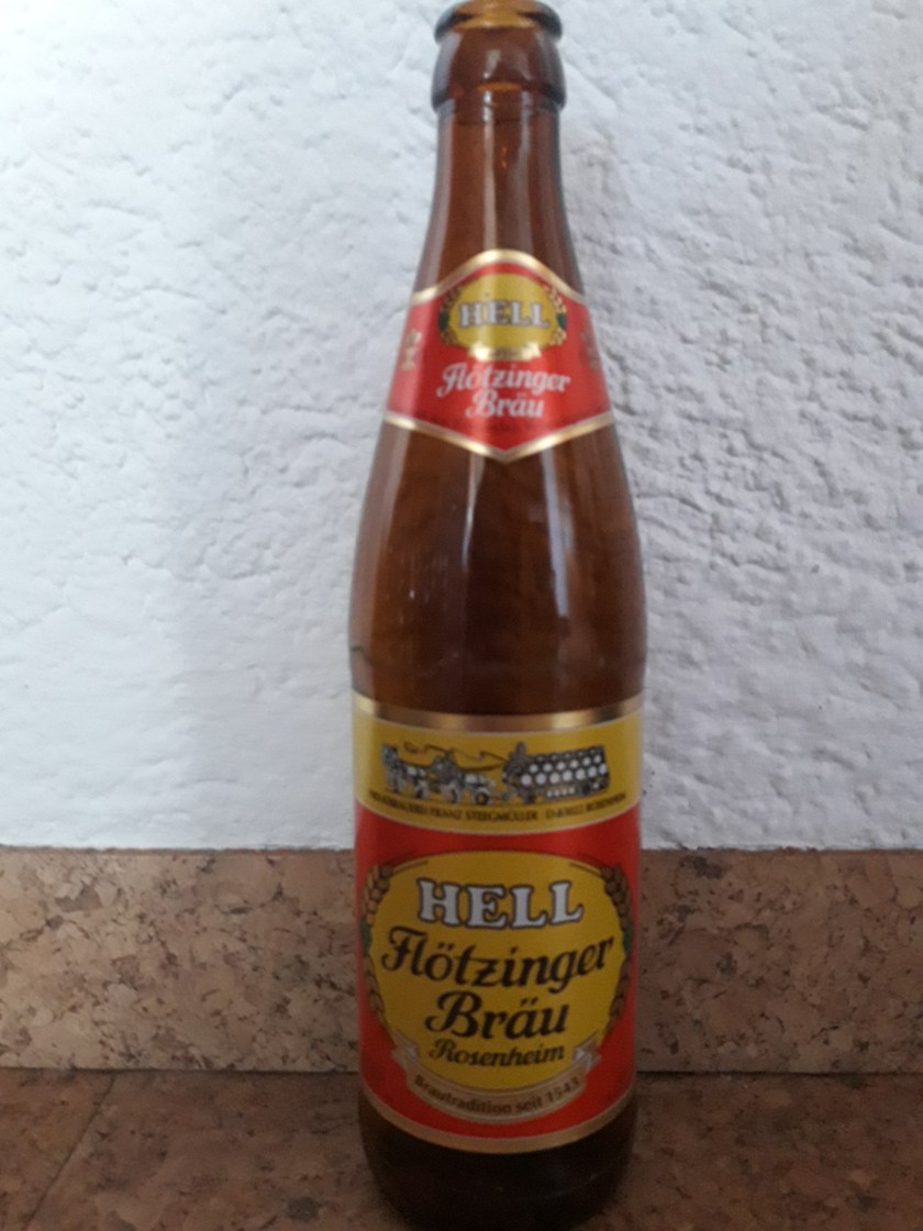 Im heutigen Biertest möchte ich euch ins tiefste Oberbayern nach Rosenheim entführen. In der nach München größten Stadt im südlichen Oberbayern befinden sich heutzutage noch 2 große Brauereien. In Privatbesitz befindet sich dabei aber nur noch eine der beiden, nämlich die Flötzinger Bräu, von der ich euch heute ein Bier vorstellen möchte. Die Brauerei ist sehr alt, denn ihre Geschichte lässt sich bis ins Jahre 1543 zurückverfolgen. Aus dem Sortiment möchte ich euch heute den Klassiker vorstellen, nämlich das Helle. Dieses Bier hat einen Alkoholgehalt von 5,2%.