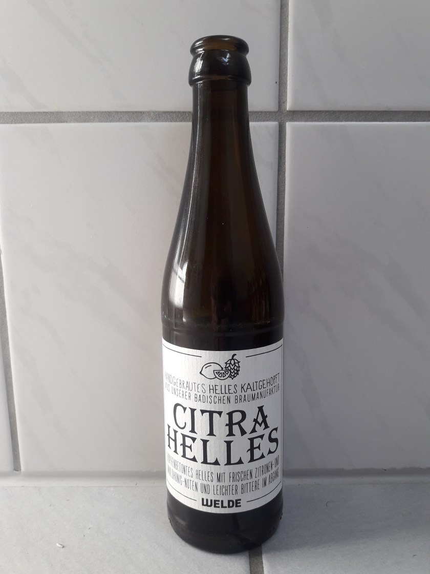Am Wochenende endet der August und damit neigt sich auch der diesjährige Sommer so langsam dem Ende entgegen. Dies soll mich aber nicht davon abhalten noch einmal ein schönes Sommerbier zu verkosten. Das Citra Helle von Welde habe ich mir hierfür ausgesucht. Ein helles Lagerbier, bei dem der Citra Hopfen im Vordergrund steht. Dieser soll dem Bier ein angenehm fruchtiges und prickelndes Aroma verleihen und weist auf eine dezente säure hin. Also doch ideal für eine sommerlicher Erfischung wenn es mal etwas anderes als ein Radler sein soll oder?. Mit einem Alkoholgehalt von 4,9% liegt es dabei auch nicht zu schwer in Magen und Kopf.