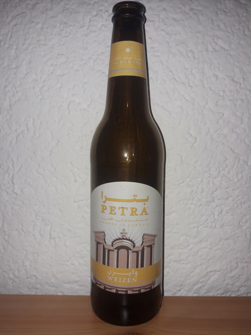Im heutigen Biertest gibt es noch einmal ein Bier aus Jordanien. Vielen dank an dieser Stelle noch einmal für das Urlaubsmitbringsel. Das heute Bier ist das Petra Weizen, welches nach der legendären Ruinenstadt mit ihrem weltbekannten Tempel benannt ist. Hergestellt wird das ganze von der Jordan Brewery welche die erste und größte Brauerei Jordaniens Ist. gegründet 1958, braute sie zunächst Amstelbier in Lizenz. Seit 1964 hat das Land mit der Markteinführung der Petra Biere auch seine eigene Markte. Verkosten werde ich heute das Weizen, also es gibt auch in Arabien ein Weizenbier. Der Alkoholgehalt beträgt 4,8%.