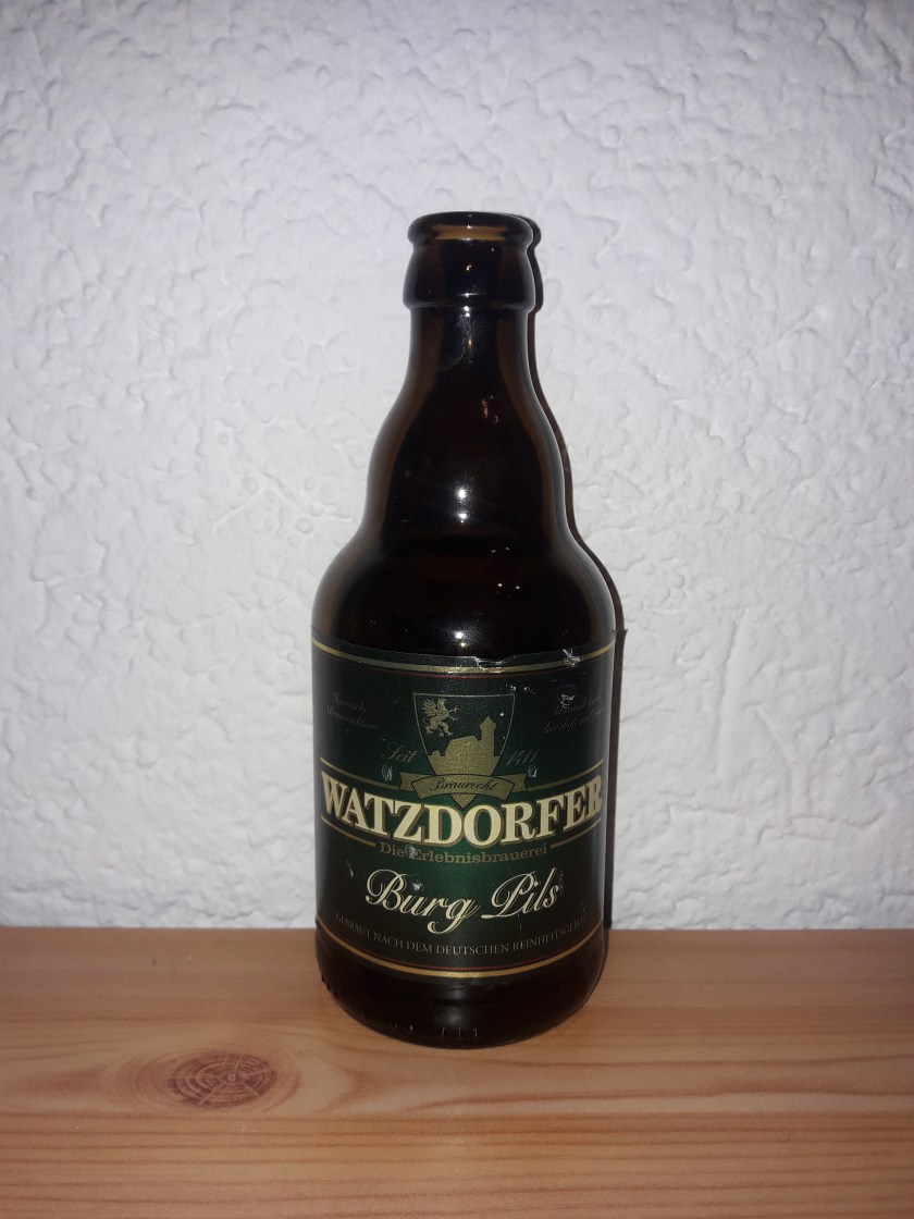Im heutigen Biertest verschlägt es uns dieses in den kleinen thüringischen Ort Watzdorf. Die Brauerei beruft sich auf eine Tradition bis ins Jahre 1411, als erstmals Dokumente vom Bierbrauen in Watzdorf überliefert sind. Die eigentliche heutige Brauerei geht auf die 1893 gegründete Watzdorfer Exportbrauerei zurück. Die Brauerei war auch durch die DDR Zeit hinweg eine Konsumgenossenschaft und entging somit der Verstaatlichung durch die Obrigkeit. Dennoch führte der Einstieg von Privatinvestoren nach der Wende zu zwei Insolvenzen und bedeutete fast das aus für die Marke. Es gelang jedoch die Brauerei zu retten und so ist sie heute wieder in Thüringer Händen. Verkosten möchte ich dabei heute das Burg Pils den Klassiker aus dem Hause mir einem Alkoholgehalt von 4,9%.