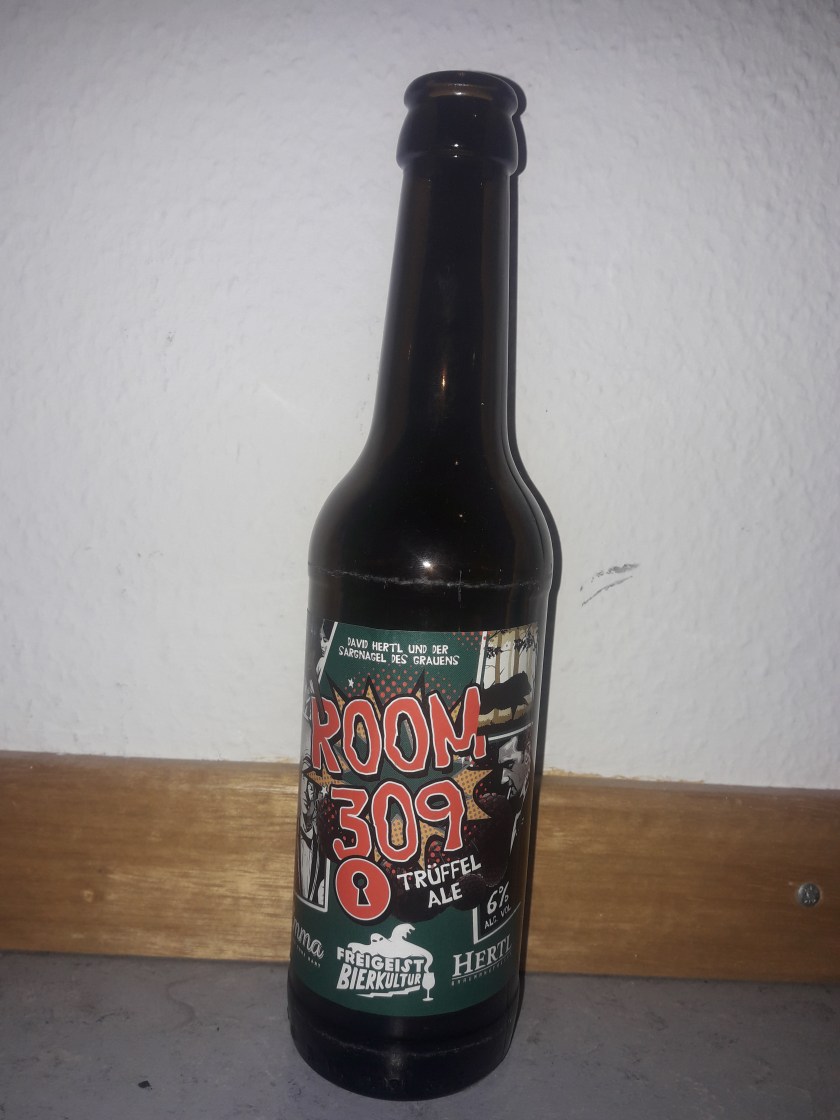 Im heutigen Biertest wird es dieses mal ein wenig skurril und auch ein wenig komplex. Nicht weniger als 4 Akteure waren an meinem heutigen Testobjekt dem Room 309 beteiligt. Das Bier ist ein Kooperationssud von Freigeist Bierkultur, Emma Biere ohne Bart und der Braumanufaktur Hertl. Gebraut wurde das ganze dann bei der Brauerei Vormann in Hagen. Herausgekommen ist schlussendlich ein Trüffel Ale, bei dem eben jener sowie schwarzer Pfeffer verwendet wurden. Der Alkoholgehalt liegt bei 6%.
