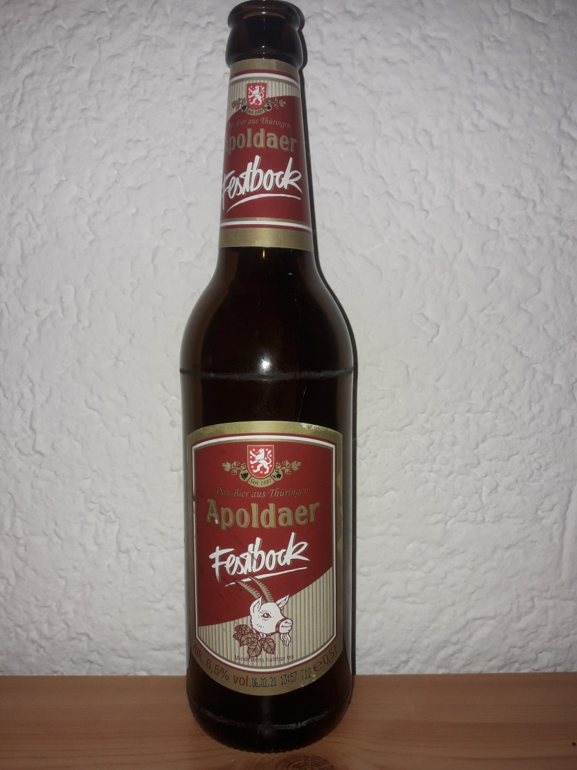 Für meinen heutigen Biertest muss ich mich erst einmal bei einem Kumpel bedanken, der mir dieses Bier aus Thüringen mitgebracht. Damit habe ich nun auch schon das Zeil meines heuten Biertest verraten, nämlich den Freistaat Thüringen. Es geht nach Apolda zur dortigen Vereinsbrauerei. Apolda selbst befindet sich zwischen Weimar und Jena. Die Stadt Apolda kann auf eine bewegte Braugeschichte zurückblicken, die schließlich im Jahre 1887 mit der Vereinigung der beiden Brauereien Karl Küschner und Gebrüder Bohring ihren vorläufigen Höhenpunkt findet, als daraus die heutigen Vereinsbrauerei Apolda hervorgeht. Auch die Apoladaer brauerei konnte der Verstaatlichung durch die DDR nicht entgehen, konnte jedoch nach der Wende erfolgreich privatisiert werden und befindet sich heute wieder in Familienhand. Die Brauerei selbst ist laut eigenen Angaben die größte, sich in Thüringer Hand befindliche Brauerei. Aus ihrem umfangreichen Sortiment möchte ich heute den Festbock verkosten, der einen Alkoholgehalt von 6,5% aufweist.