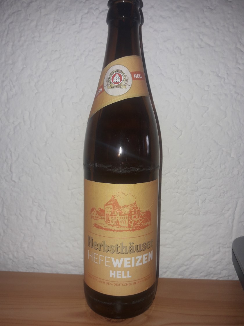 Im heutigen zweiten Biertest gibt es dieses Mal ein Bier der Herbsthäuser Brauerei aus dem gleichnamigen Ort im Nordosten von Baden Württemberg. Aus dem Sortiment möchte ich das Weizenbier verkosten. Der Alkoholgehalt liegt bei 5,2%.