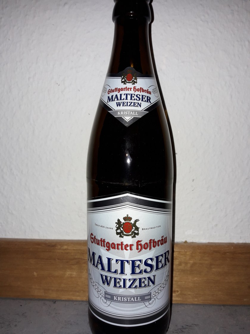 Heute habe ich in meinem zweiten Biertest wieder ein Gebräu von Stuttgarter Hofbräu im Sortiment. Es handelt sich dabei um ein Weizenbier, die bei Stuttgarter Hofbräu unter dem Namen Malteser verkauft werden. Der Name stammt von der ehemaligen Malteserbrauerei aus Amberg, deren Markenname die Brauerei von der Bischohhofsbrauerei aus Regensburg in Lizenz verwendet. Von den drei Weizenbieren widme ich mich heute dem Kristall, das einen Alkoholgehalt von 5% hat.