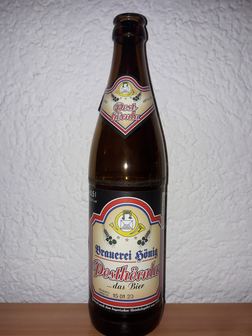 Heute geht es für meinen Biertest wieder in das Bierland Franken. Dieses Mal habe ich ein Bier der Brauerei Hönig aus Tiefenellern im Gepäck. Die Brauerei kann auf eine sehr lange Geschichte zurückblicken, die bis ins Jahre 1478 zurückreicht. Einst eine Posthaltestelle, wie man aufgrund des Posthorns im Logo gut erkennen kann, ist sie schon seit 1778 in Privatbesitz. Das Posthörnla welches ich heute verkoste, ist ein leicht angerauchtes Lagerbier mit einem Alkoholgehalt von 5,2%.