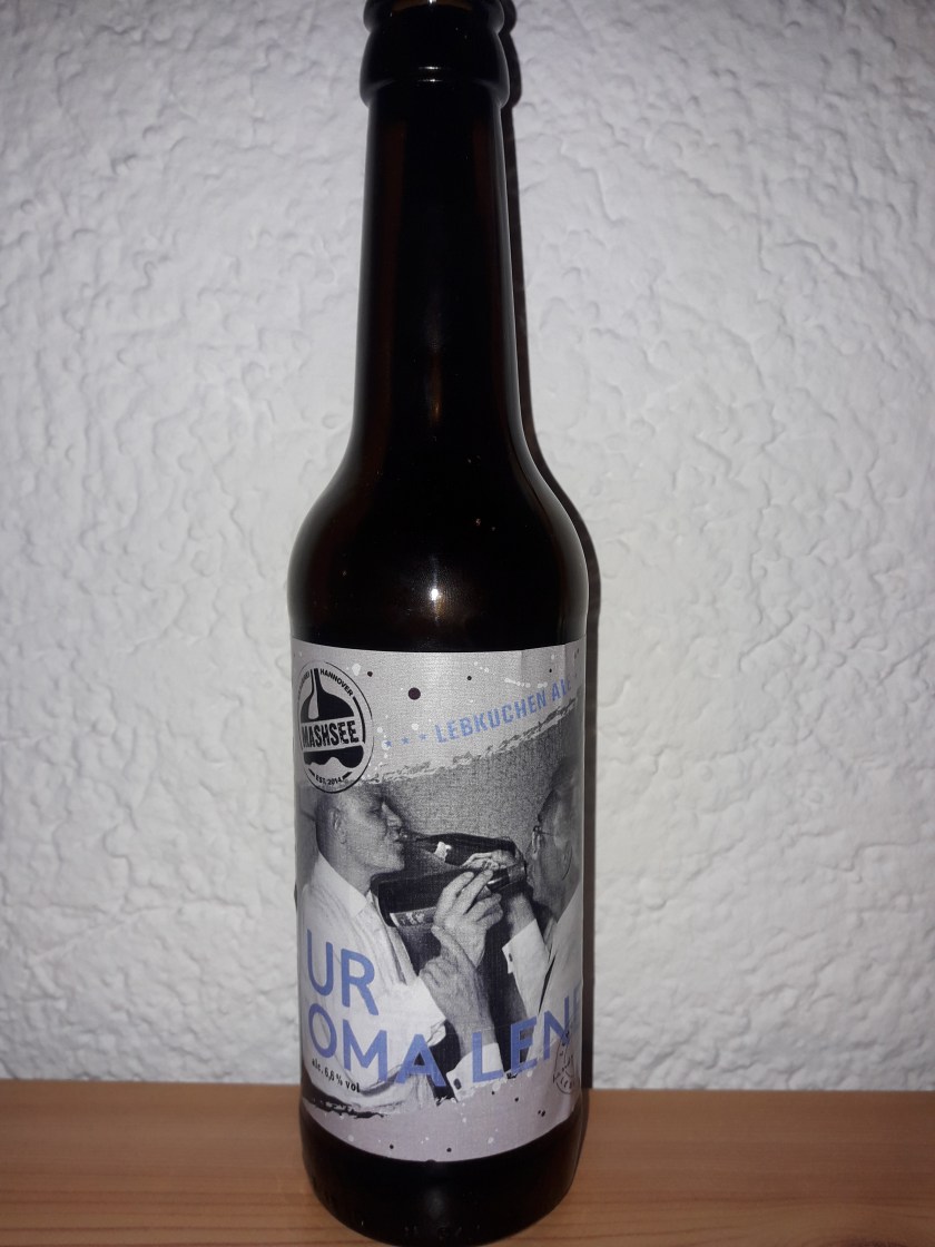 In meinem heutigen Test geht es nach Hannover zur Mashsee Brauerei und dabei wird es auch ein bisschen weihnachtlich. Die Ur-Oma Lene die ich heute verkoste soll nämlich ein Bier sein, das mit seiner Zutatenliste an verschiedenen Gewürzen geschmacklich am Weihnachtsplätzchen erinnert. Laut Beschreibung handelt es sich um ein Lebkuchen Ale mit einem Alkoholgehalt von 6,6%.