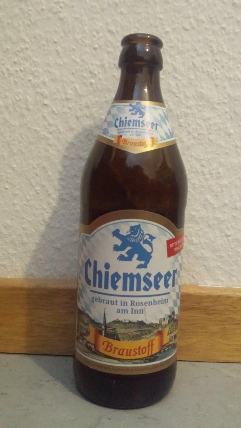 Von der Marke Chiemseer gibt es neben dem altbekannten Hellen auch noch eine zweite Sorte, nämlich den Braustoff. Gebraut wird das Ganze wie auch das Helle von der Auerbrauerei aus Rosenheim, hat also mit dem Chiemsee eher nur weitläufiger etwas am Hut, was auch einen Rechtsstreit nach sich zog. Dieser befasste sich damit ob das Bier unter dem Label Chiemseer verkauft werden darf, wenn es doch gar nicht am Chiemsee gebraut wird. Schlussendlich steht als Ergebnis seit diesem Verfahren der Zusatz gebraut in Rosenheim am Inn auf der Flasche, sodass es keine Verwirrung mehr um die Herkunft des Bieres gibt. Stilistisch bewegt sich der Braustoff zwischen Export und Märzen mit einem Alkoholgehalt von kräftigen 5,6%.