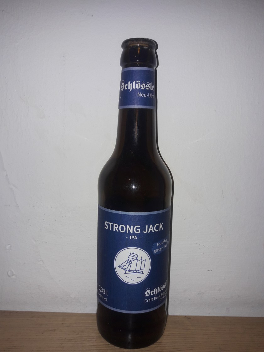 Im heutigen ersten Biertest gibt es von mir dieses Mal den strong Jack von der Brauerei Schlössle aus Neu Ulm. Das Strong Jack reiht sich in die inzwischen schon etwas längere Liste der IPAs und aller stilistisch ähnlicvhen Biere ein. Der Alkoholgehalt liegt bei 5,1%.