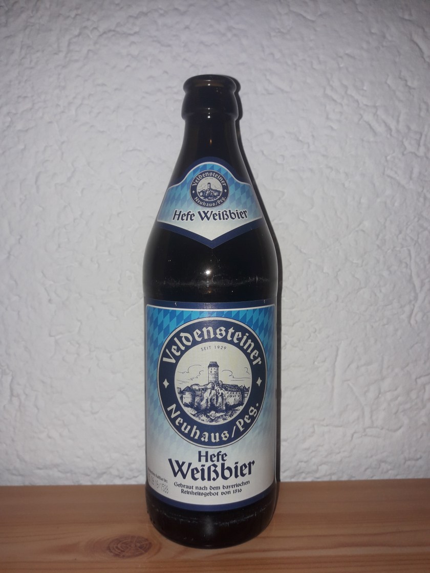 Im heutigen Test darf es zur Abwechslung mal wieder ein Weissbier sein. Es ist das Weizen der Marke Veldensteiner, welche von der Kaiser Bräu aus Neuhaus an der Pegnitz gebraut wird. Geographisch befinden wir uns also in Franken unweit von Nürnberg. Wahrzeichen der Stadt Neuhaus ist die Burg Veldenstein, welche Namensgeber des Bieres ist und auch auf den Etiketten der Flaschen zu sehen ist. Das Weissbier, welches bereits einige Auszeichnungen erhalten hat kommt auf einen Alkoholgehalt von 5,1%.