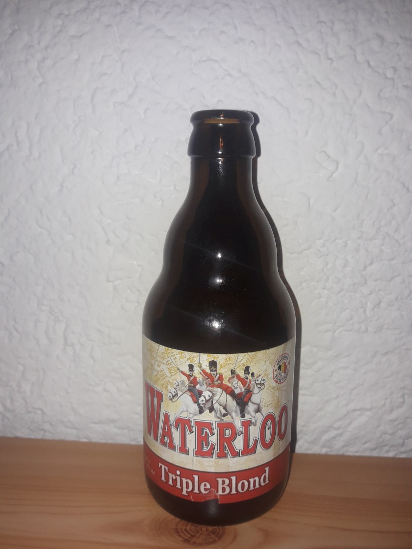 Waterloo, Für Abba der Beginn einer Weltkarriere, für Napoleon jedoch das Ende eben jener. Am 18 Juni, also vor genau 8 Tagen, jährte sich diese 1815 stattgefundene Schlacht nun schon zum 206. Mal. Die im Zentrum Belgiens gelegene Stadt ist aber nicht nur Namensgeber eben jener Schlacht, sondern es gibt auch ein Bier das auf diesen Namen hört und sich auf dieses historische Ereignis bezieht. Selbstverständlich kommt dieses aus Belgien und stammt ursprünglich von der Brasserie du Marche, die auch unweit dem Ort der Geschehnisse lokalisiert ist. Gebraut wird es heute von der Brasserie du Bocq und wird vom belgischen Bierhändler Anthony Martin vertrieben. Von den inzwischen 6 Sorten des Bieres werde ich heute das Triple Blond verkosten, das auf einen Alkoholgehalt von 8% kommt.