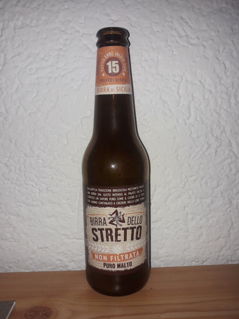Für den heutigen Test geht es noch einmal in den Süden Italiens zur Birrificio Messina. Nachdem ich zuletzt ein Bier der Marke Birra Messina vorgestellt habe welches in Kooperation mit Heineken gebraut wurde, habe ich heute nun ein Bier welches aus dem eigentlichen Sortiment der Birrificio Messian stammt. Die rede ist hier vom Birra dello stretto non filtrata, einem naturtrüben Lagerbier. Der Alkoholgehalt des Bieres liegt bei 5%.