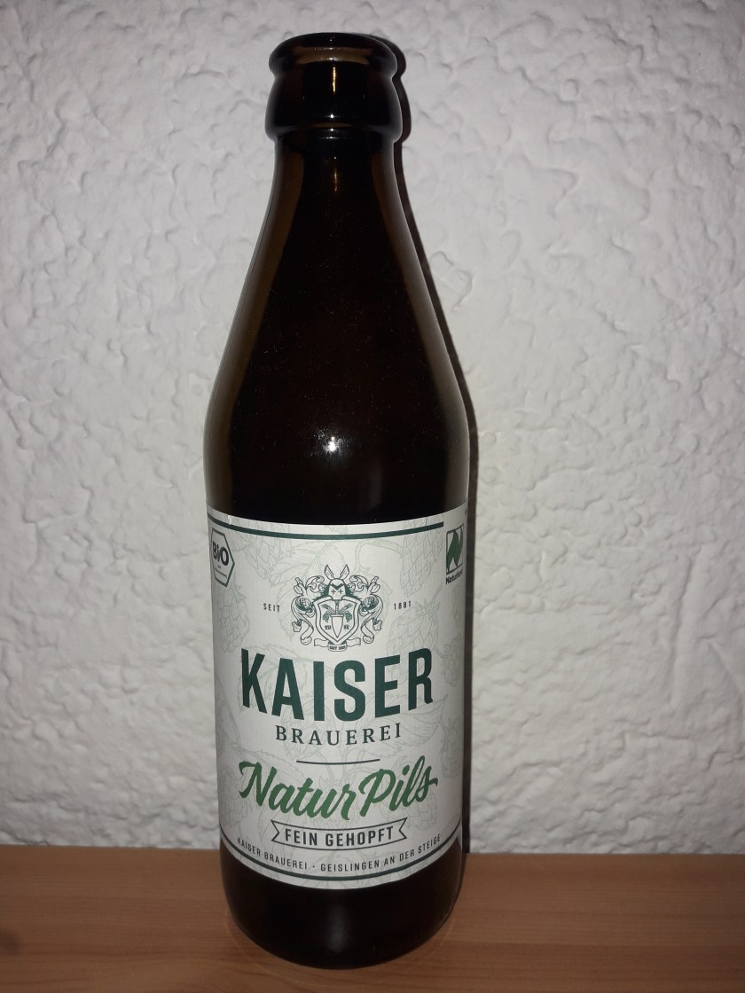 Nach der Insolvenz vor ein paar Jahren hat die Geislingen Kaiser Brauerei damit begonnen ihr komplettes Layout und auch nach und nach das Sortiment umzugestalten und anzupassen. Diesen Prozess hat auch das bisher stiefmütterlich behandelte Pils durchlaufen, an dessen Ende das neue Kaiser Naturpils steht. Dieses wird in dem nun folgenden Bericht Thema sein. Das Naturpils setzt voll auf die Ökoschiene, das Wort Natur ist hier also nicht nur eine leere Worthülse. Neben der Verwendung von Bio-Naturhopfen, wird das Bier auch aussließlich mit Solarenergie gebraut. Der  Alkoholgehalt liegt bei 4,9%.