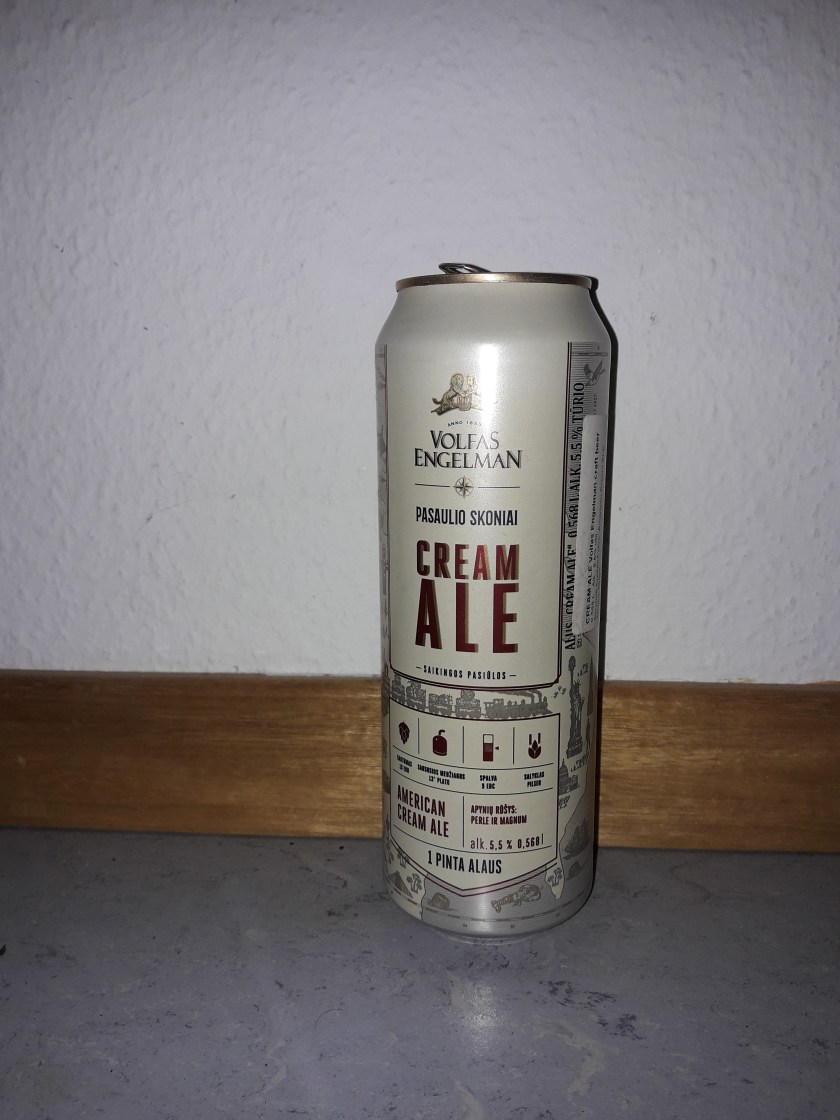 Für den heutigen Test verschlägt es mich ins Baltikum, genauer gesagt nach Litauen. Die Brauerei Volfas Engelmann ist eine der größten des Landes und hat auch eine Reihe von Ales im Sortiment. So mein heutiges Testbier das Cream Ale. Der Alkoholgehalt liegt bei 5,5%.