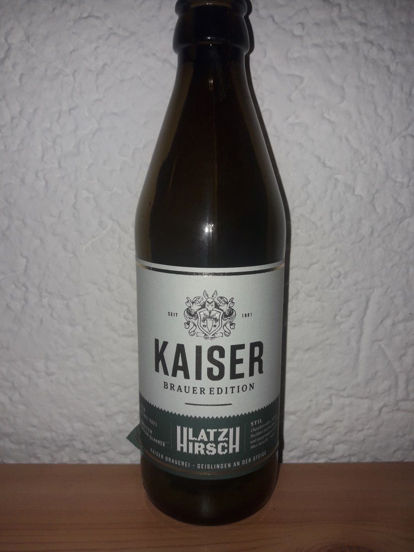 Von der Kaiser Brauerei aus Geislingen gibt es etwas neues. Nachdem unter dem Label Brauer Edition bereits das Gölsch, ein Geislingen Kölsch, erschienen ist, hat man mit dem Latz Hirsch nun ein zweites nachgelegt. Das von Brauer Lothar Glauner inszenierte Bier ist stilistisch laut Etikett ein obergäriger Bock, also ein Weizenbock. Alkoholtechnisch hat es dementsprechend auch ordentliche 6,5%.
