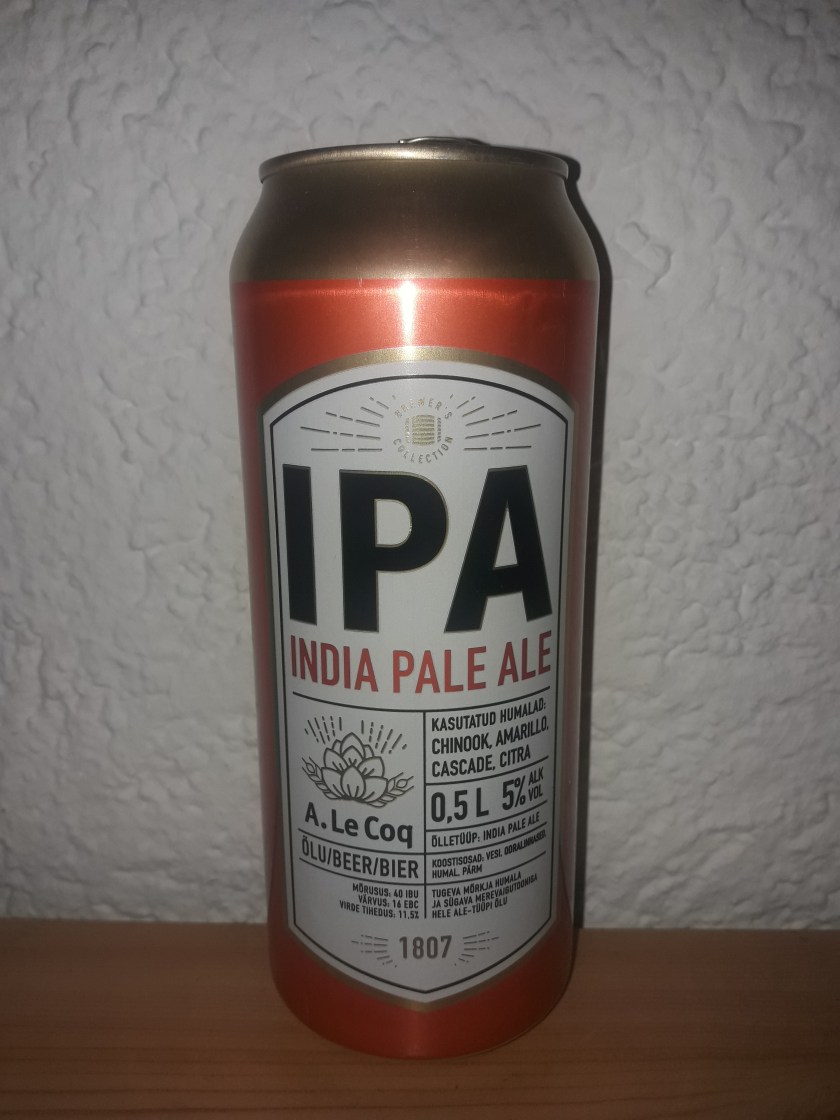 A. le Coq, klingt wenn man ehrlich ist nicht gerade nach Estland sondern würde man wohl eher im frankophonen Sprachraum lokalisieren. Hinter diesem Namen verbirgt sich aber tatsächlich eine der größten Brauereien des nördlichsten der drei baltischen Staaten. Ihren Namen hat die Brauerei von der Familie le Coq, einer hugenottischen Stammesfamilie, die gezwungen war Frankreich wegen ihres Glaubens in Richtung Preußen zu verlassen und die sich die Brauerei im Jahre 1913 einverleibte. Gegründet worden war sie aber schon im Jahre 1826 als erste moderne Brauerei auf dem Gebiet von Estland. Im Zuge der Reprivatisierung nach der Sowjetherrschaft gehört die Brauerei inzwischen vollständig der finnischen Olvi Brauerei. Das IPA aus diesem Hause kommt mit einem Alkoholgehalt von 5% verhältnismäßig moderat daher.
