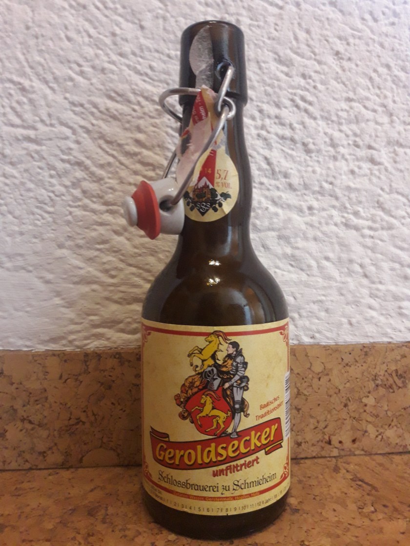 Ich bleibe im bischen und werde nun ein Bier der Schlossbrauerei Schmieheim verkosten. Dieses hört auf den Namen Geroldsecker. Seinen ungewöhnlichen Namen hat es vom Geroldsecker Land, ein Territorium zu dem die Stadt Schmieheim im Mittelalter gehörte. Stilistisch geht es mit seinen 5,7% schon in Richtung eines Märzens.