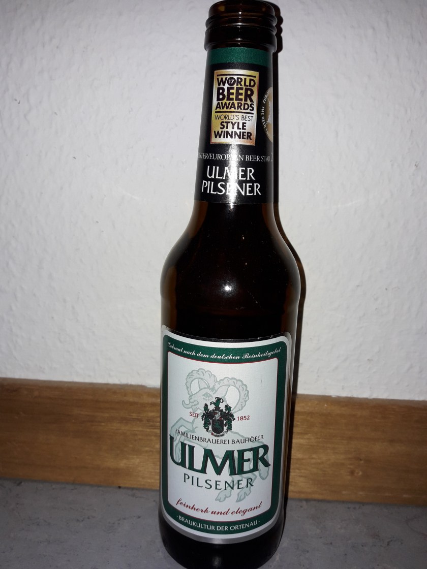 Um Verwechslungen mit der gleichnamigen Stadt an der Donau und der dort ansässigen Brauerei Gold Ochsen auszuschließen, hat man sich in der Ortenau bei der Brauerei Bauhöfer dazu entschlossen, die Biere künftig unter dem Familienamen der Eigentümer Bauhöfer zu vermarkten. Daher ist meine Flasche des heutigen Testbieres mit dem Label Ulmer Pilsner nicht mehr up to date. Der Alkoholgehalt liegt bei 5,2%.