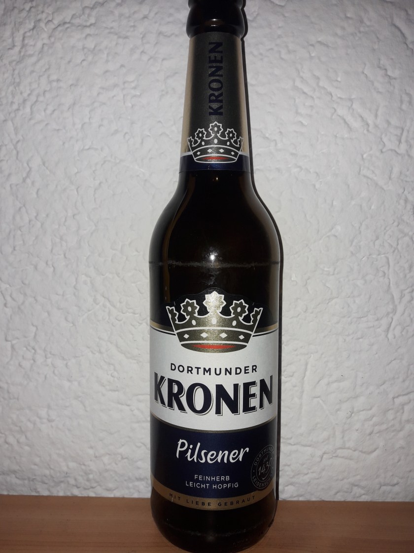 Zum Championsleaguefinale heute Abend zwischen Real Madrid und dem BVB aus Dortmund gibt es in meinem heutigen Test natürlich ein Bier aus der einstigen Bierhauptstadt der Welt. Denn zwischenzeitlich gab es über 70 Brauerien in der Stadt und auch die Industrielle Großproduktion des Gersensafts erreichte in Dortmund im 21. Jahrhundert ihren Höhepunkt. Von den einstigen Großbrauereien der 60er Jahre ist in Folge eines Konzentrationsprozesses aber nur noch die Aktienbrauerei (DAB) übrig geblieben, in der heute alle bekannten Dortmunder Marken gebraut werden. Die Aktienbrauerei selbst ist auch nur noch Teil der Radeberger Gruppe, nachdem sie in Folge von finanziellen Schwierigkeiten von der Frankfurter Binding Brauerei übernommen worden war. Das Export, war jene Biersorte, die den Bierstandort Dortmund groß gemacht hat, jedoch hat im Zuge des Siegeszugs des Pilsbieres ab den 1960er Jahren auch diese Sorte bei den Dortmunder Brauereien Einzug erhalten. Da ich leider schon alle Exportbiere die es von Dortmunder Marken gibt verkostet habe, muss ich mich heute mit einem Pilsbier begnügen. Es wird hierbei jenes von der ehemaligen Kronenbrauerei sein, das auf einen Alkoholgehalt von 4,8% kommt.