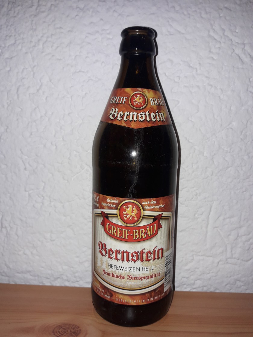 Ich widme mich im nächsten Biertest dem Bernstein der Brauerei Greif aus Forchheim. Hierbei handelt es sich um ein obergäriges Weizenbier mit einem Alkoholgehalt von 5,4%.