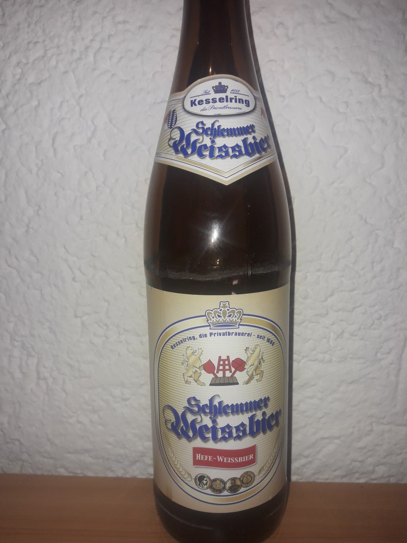 Zum schlemmen ist mein nächster Biertest von der fränkischen Brauerei Kesselring. Diese hat ihre Weißbiere mit dem Namenszusatz Schlemmer versehen, was bei mir schon eine gewisse Erwartungshaltung erzeugt. Das helle das ich mir heute ausgesucht habe kommt auf einen Alkoholgehalt von 5,3%.