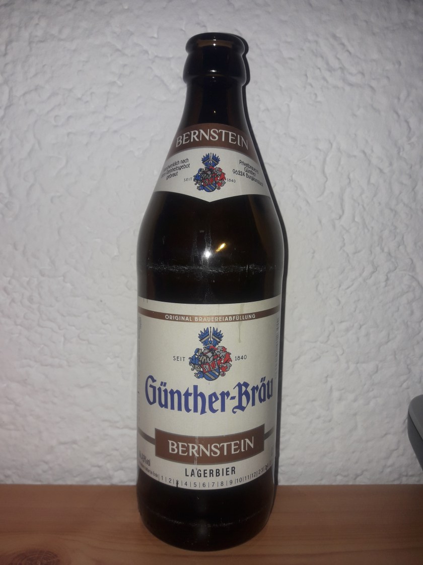 Das Bernstein von der fränkischen Günther Bräu habe ich heute als nächstes im Test. Der Alkoholgehalt liegt bei 4,9%.