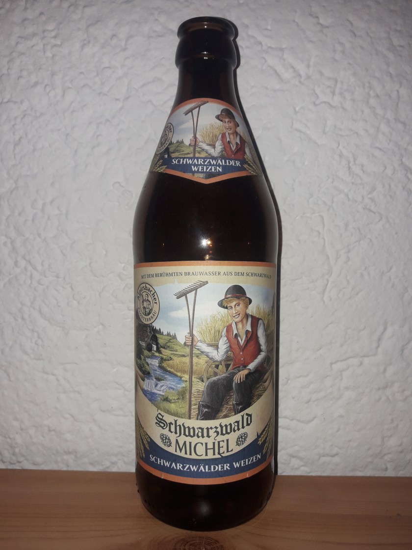 Vom schwarzwaldmichel der Alpirsbacher Klosterbräu gibt es nicht nur ein helles Vollbier sondern auch ein Weizenbier. Dieses kommt heute zu mir in den Test und kommt auf einen Alkoholgehalt von 5,2%.