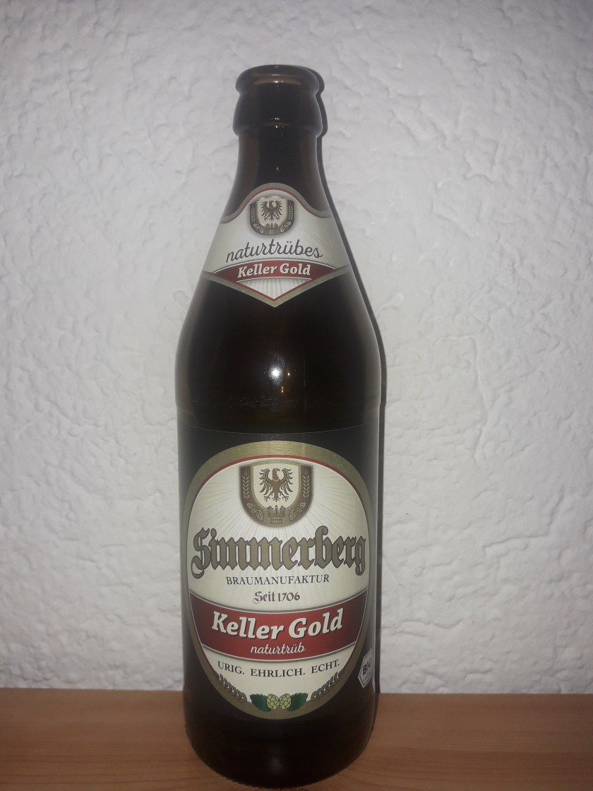 Zur Optik: Ein naturtrübes, bernstein bis fast bräunliches Bier mit durchaus passablem Schaum.