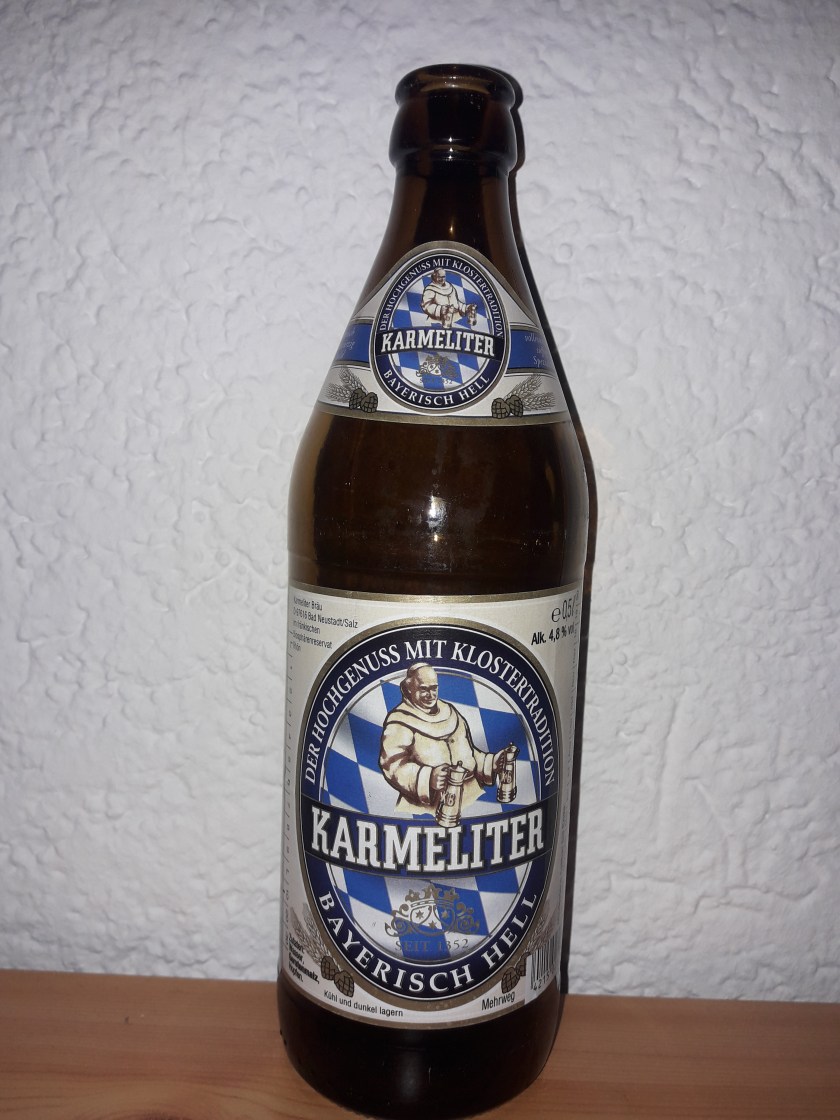Nachdem die Karmeliterbrauerei aus Salz in Unterfranken mitte letzten Jahres geschlossen hatte, wurden die Rezepturen ihrer Biere überraschender Weise von der Oettinger Brauerei erworben, die sich damit wohl neu am Markt positionieren möchte und neben ihrem gewohnten „Billigsortiment“ auch etwas für die anspruchsvolleren Biertrinker anbierten möchte. So verkoste ich heute das Bayerisch Hell der Karmelitermönche, deren Brautradition bis ins Jahre 1352 zurückreicht.
