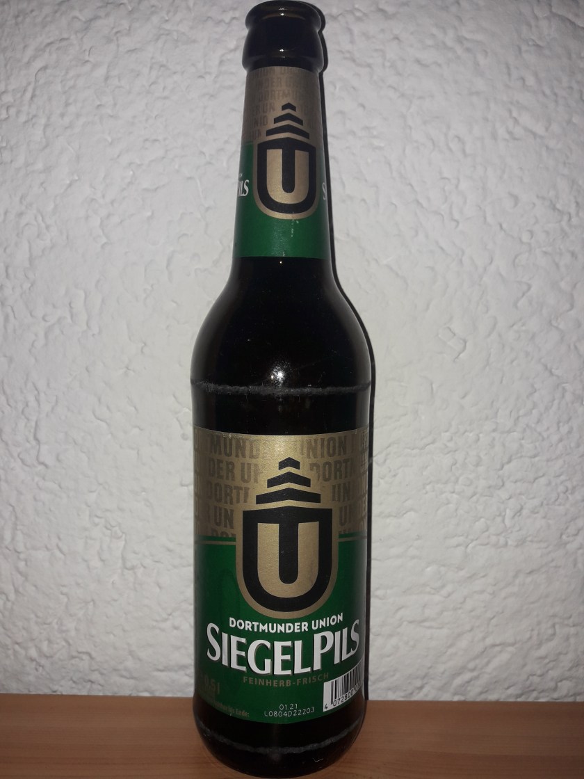 Die Dortmunder Union war einmal eine der führenden und größten Brauereien Deutschlands und der Bierstadt Dortmunds. Jedoch hat auch sie den Konzentrationsprozess der 90er und 2000er Jahre nicht überstanden. Als führende Kraft der Brau und Brunnen AG wurden ab den 1970er Jahren zahlreiche Brauereien in Deutschland übernommen, bis man schließlich zu Deutschlands größter Brauereigruppe angewachsen war. Nachdem na sich jedoch mit den Übernahmen finanziell übernommen hatte, führte dies schließlich zum ökonomischen Niedergang. Deshalb kaufte Dr. Oetker die Brau und Brunnen im Jahre 2004 auf und integrierte sie in die hauseigene Radeberger Gruppe. Die Union Brauerei selbst braute lange am historischen Standort mit dem Dortmunder U, welches noch heute ein Wahrzeichen Dortmunds ist. Im Jahre 1994 zog man auf das Gelände der kurz zuvor übernommenen Dortmunder Ritter Brauerei. Hier braute man noch bis zum Jahre 2006 als Brauerei Brinkhoff, bevor der Braubetrieb schließlich ganz eingestellt wurde. Seither werden die Biere, wie auch die übrigen Dortmunder Marken in der Dortmunder Actien Brauerei gebraut. Der Alkoholgehalt des Siegel Pils liegt bei 4,8%.