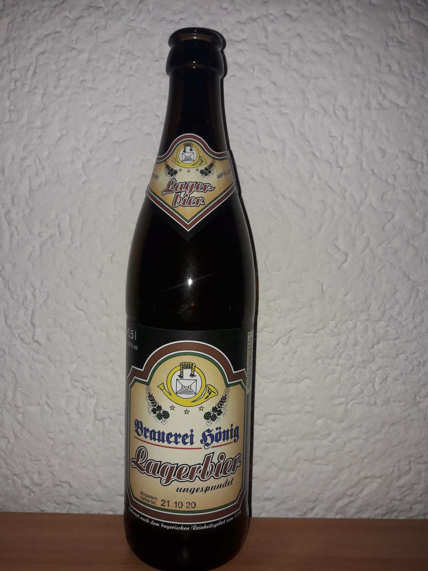 Für meinen nächsten Biertest habe ich ein Bier aus Tiefenellern östlich von Bamberg. Ich gehe also wieder ins Herz von Franken, Deutschlands Bierregion Nr. 1. Dort braut die Brauerei Hönig und ihr wohl bekanntestes Bier ist das Lager. Das kommt auf einen Alkoholgehalt von 4,8%.