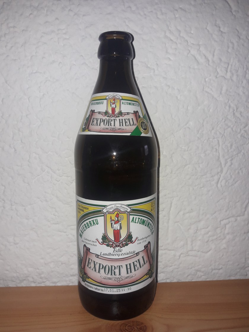 Für meinen nächsten Biertest nehme ich wieder mit nach Oberbayern. Es geht nach Altomünster, welches gewissermaßen im Herzen der Region liegt und sich etwas westlich von München befindet. Von den dort ansässigen 2 alteingesessenen Brauereien gibt es heute das Export Hell der Maierbräu. Der Alkoholgehalt liegt bei 5,1%.
