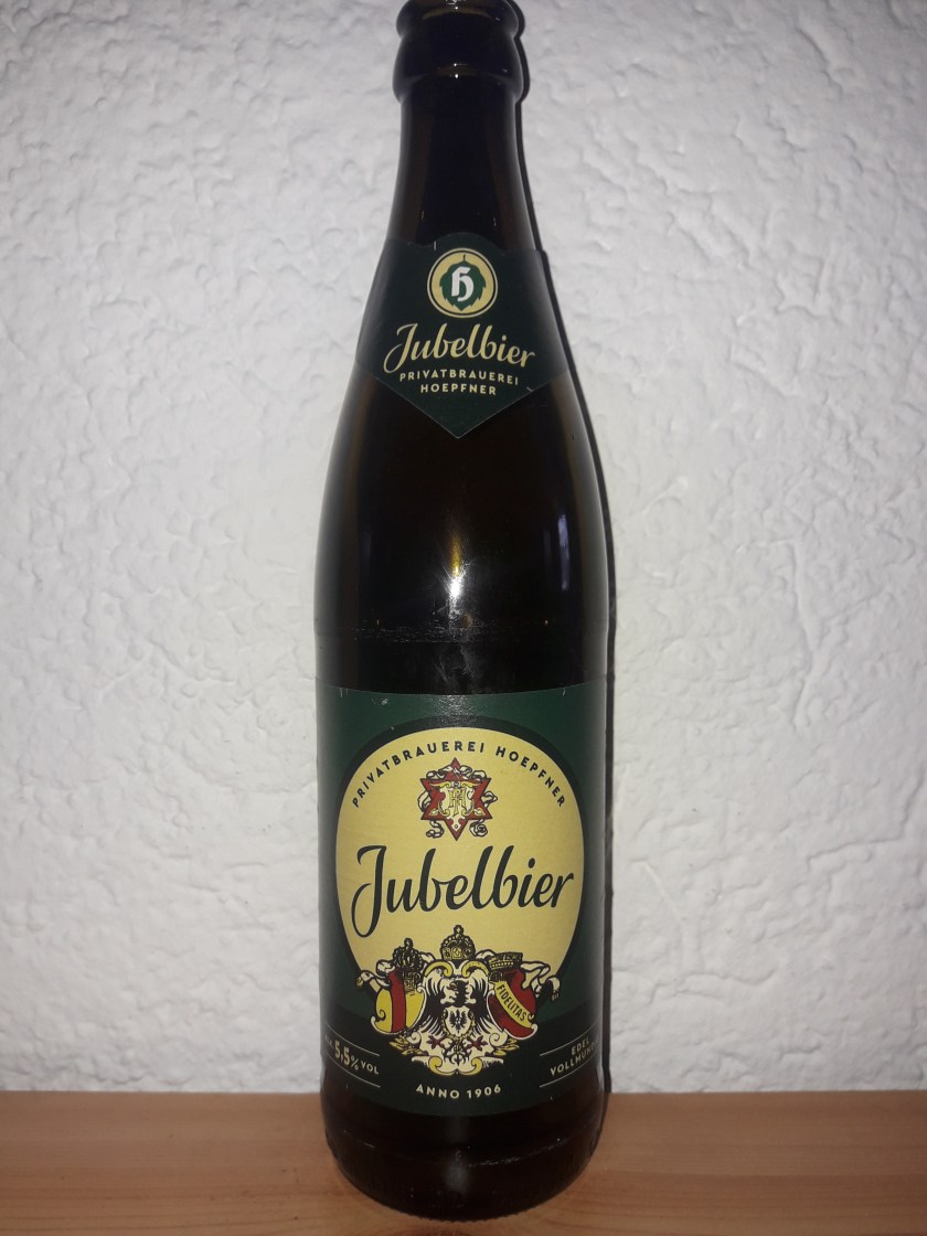 Für den nächsten Biertest gehe ich etwas südlicher auf der Landkarte und Lande in Karlsruhe bei der Brauerei Hoepfner. Das Jubelbier von Hoepfner wurde erstmals im Jahre 1906 zu ehren des damligen Großherzogenpaares aus Baden gebraut. Residenzstadt des Großherzogtums war bekanntlich Karlsruhe, als liegt es durchaus Nahe, das eine dort ansässige Brauerei für diesen Anlass ein spezielles Bier braut. Der Alkoholgehalt des Bieres liegt bei 5,5%.