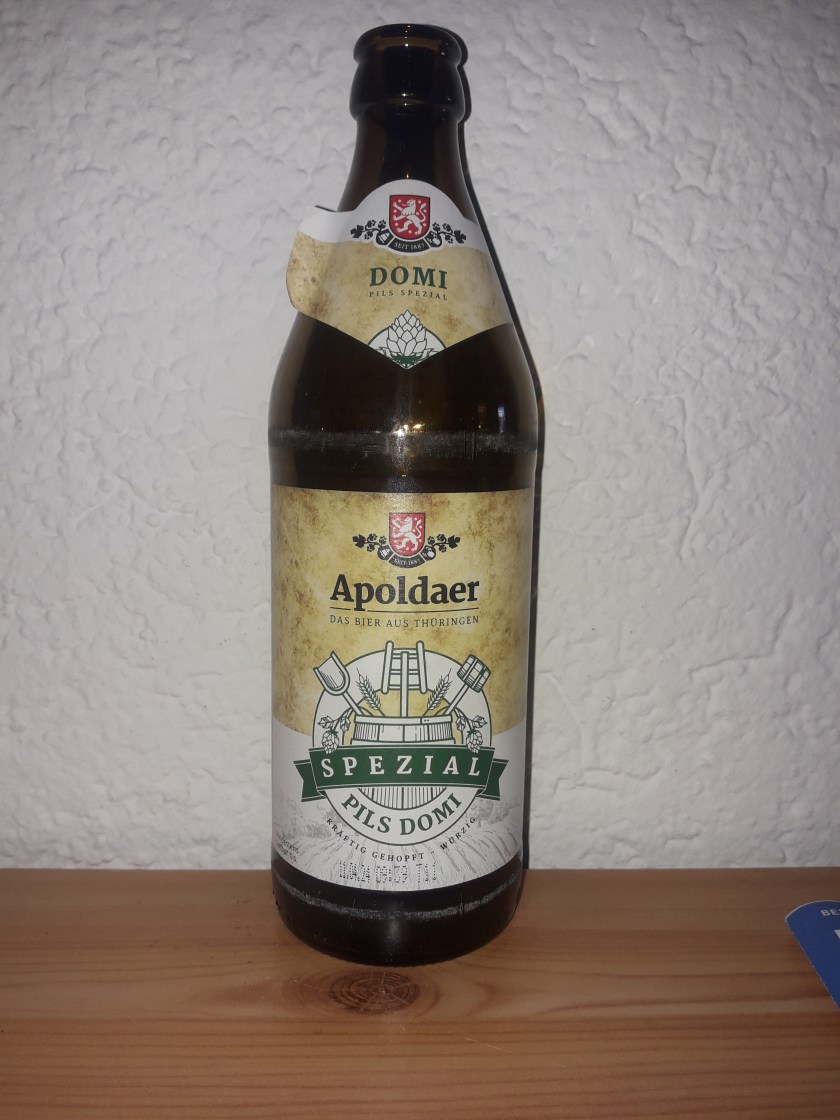 Für meinen nächsten Biertest mache ich einen Sprung nach Ostdeutschland, genauer gesagt nach Thüringen. Das ein oder andere Bier der Vereinsbrauerei Apolda habe ich bereits im Kanal verkostet, nun steht der absolute Klassiker des Sortiments, das Pils Domi Spezial, oder kurz einfach nur Domi genannt, auf dem Programm. Der Alkoholgehalt liegt bei 5%.