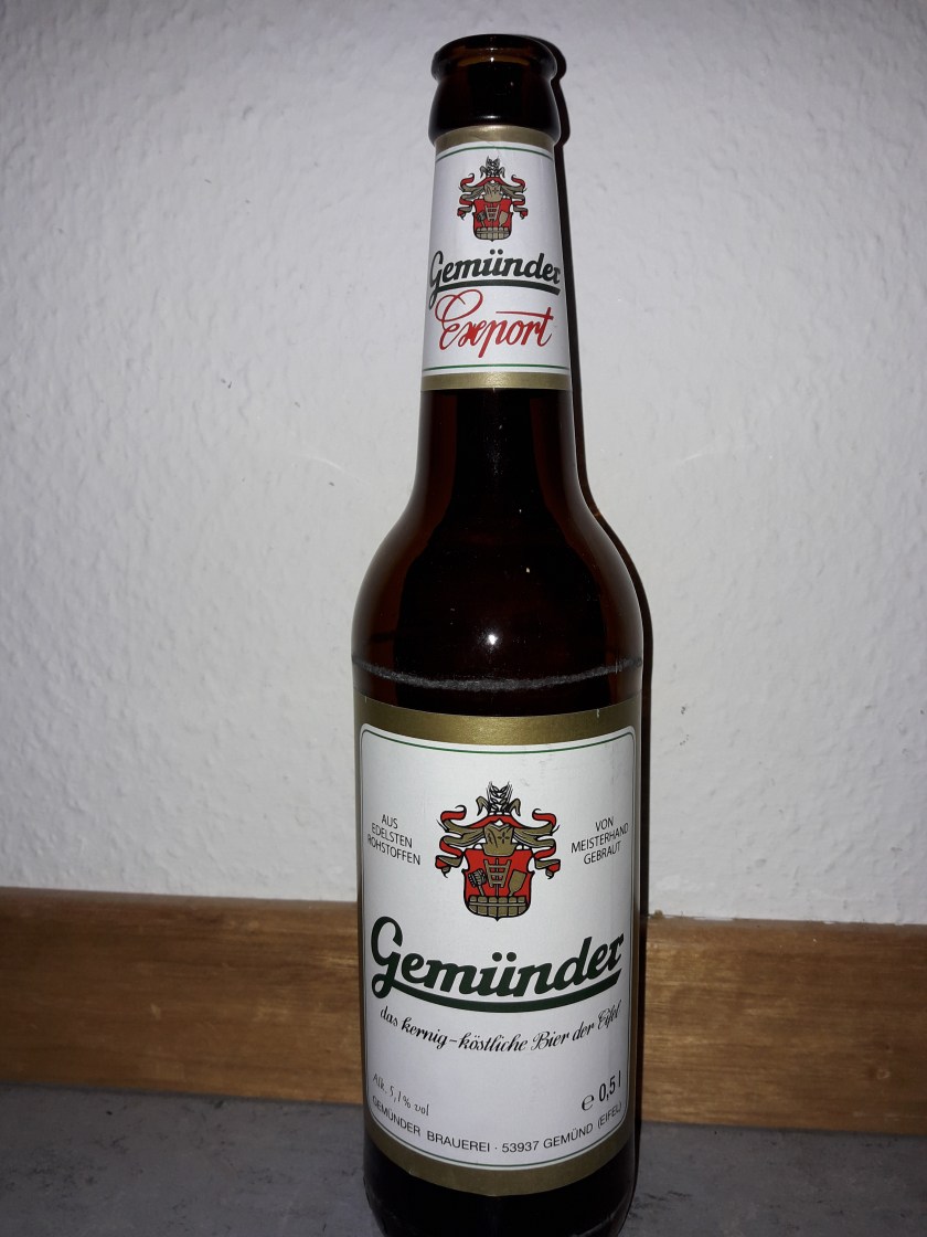 Für meinen nächsten Biertest mache ich einen Ausflug in die Eifel. Die 1961 gegründete Gemünder Brauerei ist vergleichsweise noch relativ jung und befindet sich im gleichnamigen Ortsteil von Schleiden. Sie ist noch immer in Familienbesitz und braut vorrangig klassische Bierstile wie zum Beispiel das Export, welches ich heute auch verkosten werden. Der Alkoholgehalt des Bieres, welches auf der Website nicht beworben wird, liegt bei 4,9%.