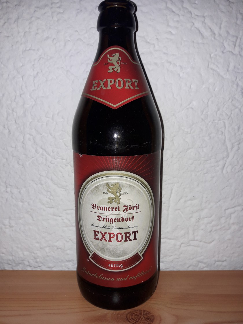 Seit 2017 braut bei der Brauerei Först in Drügendorf nun die schon vierte Generation der Familie Först. Die Tradition der Brauerei reicht sogar noch viel länger zurück, nämlich bis ins Jahr 1525. Das Exportbiere nicht immer hell sein müssen zeigt die Brauerei zudem mit meinem heutigen Testbier, das sich als Export bezeichnet, aber ein dunkles Lagerbier ist. Wie alle Biere bei Först wurde auch dieses Bier nicht filtriert und kommt auf einen Alkoholgehalt von 5,3%.