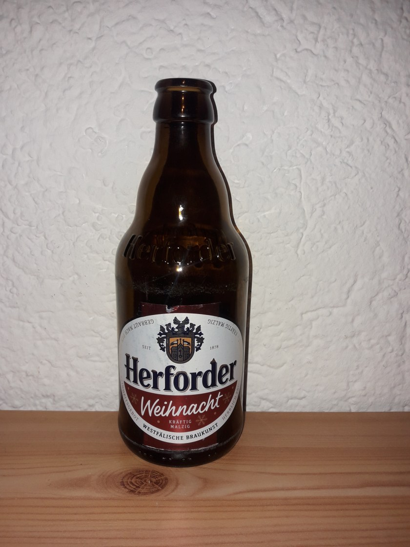 Ja es ist tatsächlich schon wieder so weit. Heute ist der 25. Dezember und damit schon wieder Weihnachten. Der Heilige Abend ist überstanden und am tatsächlichen Weihnachtsfest geht es nun weiter mit der Völlerei. Dabei darf natürlich auch ein passendes Weihnachtsbier nicht fehlen, denn es muss ja nicht immer Wein zum Weihnachtsmenü sein. Deshalb habe ich heute eines aus Ostwestfalen im Test, nämlich das Weihnachtsbier aus der Brauerei Herford. Der Alkoholgehalt des Bieres ist wie bei vielen Festbieren etwas höher angesetzt, im Falle des Herforder Bieres liegt dieser sogar bei 5,8%.