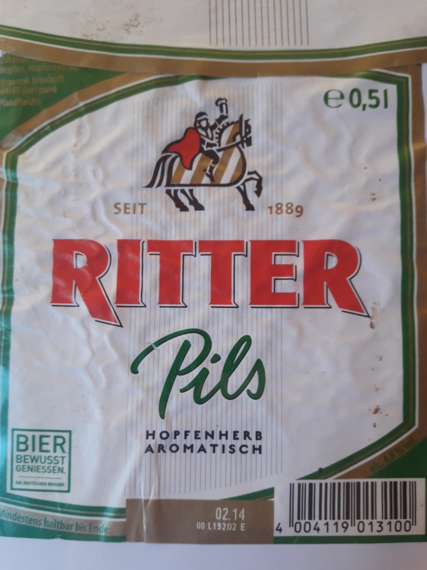 Auch das Pils der ehemaligen Ritterbrauerei findet sich inzwischen im Portfolio von Dr. Oetker bzw. der Radebergergruppe. Dementsprechend wird es auch wie die meisten anderen Dortmunder Traditionsbiere in der letzten noch verbliebenen Brauerei der goldenen Dortmunder Bier Ära, der Actien-Brauerei gebraut. Dabei ist auch die ursprüngliche Ritterbrauerei nicht das, was man sich unter einer historisch gewachsenen Traditionsbrauerei vorstellt. Bei der Ritter Brauerei wurde von Anfang an groß gedacht und so wurde die 1889 gegründete Brauerei bewusst glich zu Beginn als industrielle Großbrauerei Konzipiert. Die Dortmunder Biergesellschaft, wie die Brauerei seit ihrer Gründungszeit hieß, wuchs in den folgenden Jahren durch gezielte Fusionen und Übernahmen von Konkurrenten zu einer der größten im gesamten Ruhrgebiet. Ihren Name erhielt die Brauerei durch die Übernahme der vormaligen Ritterbrauerei Rittershaus & Wuppermann. Nachdem sich ab den 1980er Jahren der Rückgang der Schwerindustrie im Ruhrgebiet auch auf die Brauereien auswirkte, begann ein Konzentrationsprozess unter den verbliebenen Dortmunder Großbrauereien, welchem 1994 auch die Ritter Braueei zum Opfer viel, als sie von der Unionbrauerei geschluckt wurde. Jedoch beschloss die Unionsbrauerei den Standort der Ritterbrauerei zu übernehmen und den eigenen Standort mit dem berühmten Dortmunder U aufzugeben. So war der Standort der Ritterbrauerei, welcher ab 2002 als Brauerei Brinkhoff firmierte im Jahr 2005 der, von der Actien Brauerei abgesehen, letzte Brauereistandort der ehemaligen Großbrauereien in Dortmund der stillgelegt wurde. Der Alkoholgehalt des Ritter Pils liegt bei 4,8%.