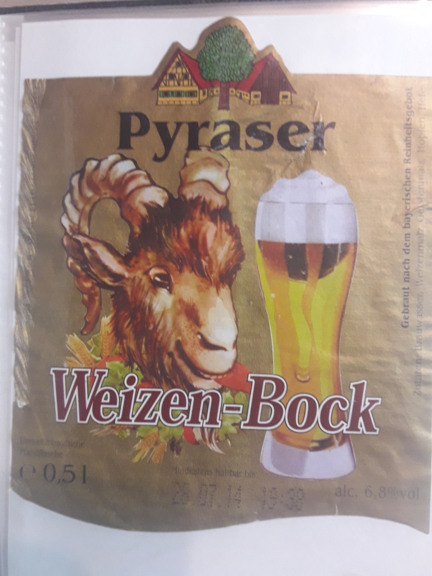 Fastenzeit ist Bockbierzeit. Dieses Mal widme ich mich aber nicht dem klassischen untergärigen Bock, sondern einem obergärigen Vertreter, nämlich einem Weizenbock. Ich stelle nun jenen der Pyraser Landbrauerei, einer inzwischen durchaus recht großen Mittelstandsbrauerei aus der gleichnamigen mittelfränkischen Gemeinde Pyras. Der Alkoholgehalt liegt bei 6,8%.