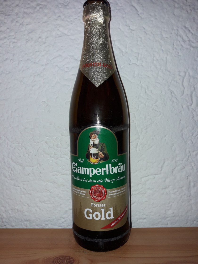 Von der fränkischen Gampertbräu, der Biermarke bei der einem auf dem Etikett ein Pfeife rauchender Förster zuprostet, verkoste ich nun das Förster Gold. Es handelt sich hier um ein Exportbier mit einem Alkoholgehalt von 5,5%.