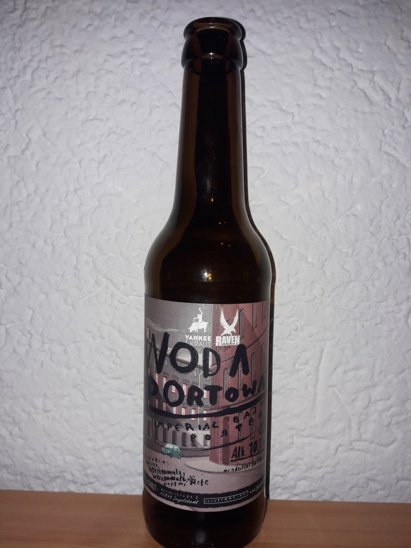 Im heutigen Biertest gibt es mal wieder eine Kollaborationssud, sprich ein Bier, welches von mindestens 2 Brauereien gemeinsam gebraut wurde. Die beteiligten Akteure am heutigen Testobjekt sind zum einen Yankee & Kraut aus Ingolsstadt sowie die Tschechische Craftbrauerei Pivovar Raven. Gebraut wurde dabei bei der Brauerei Binkert in Franken. Herausgekommen ist schlußendlich das Woda Portowa, ein Baltic Porter mit stattlichen 10% Alkohol.