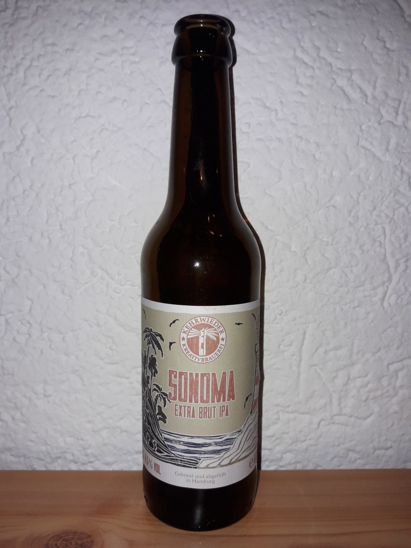 Im heutigen Biertest geht es mal wieder in den hohen Norden in die Hansestadt Hamburg. Es steht dieses mal mit dem Sonoma ein Brut IPA auf dem Programm. Brut deshalb, weil es trocken sein und an einen Champagner erinnern soll. Mit 8,5% Alkohol ist es zudem auch nicht ohne.
